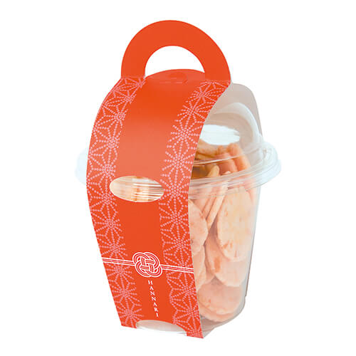 サイズが本体直径101×85(底直径60×口径90)・フタ直径105×37mmのお菓子向けギフトパッケージ。プチせんべいやあられなどの包装にちょうど良い大きさとなっています。お菓子のパッケージにいかがでしょうか。