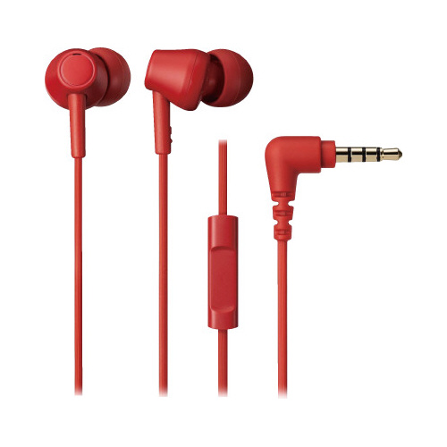 ハンズフリーで通話も音楽も思いのまま。人と地球にやさしい、かんたんマイク付イヤホンレッド
