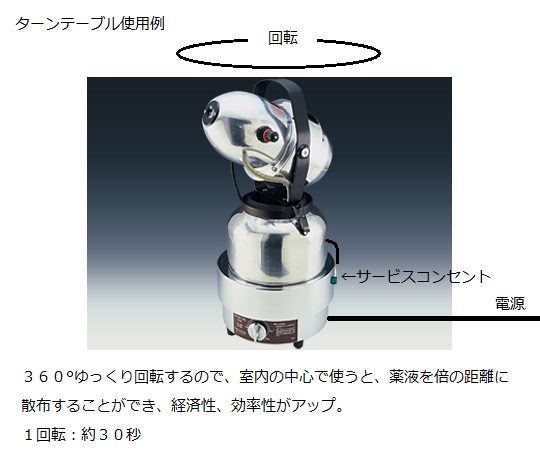 ●ターンテーブル(別売)を使用すると360°回転ができますので、薬剤を広範囲に散布できます。