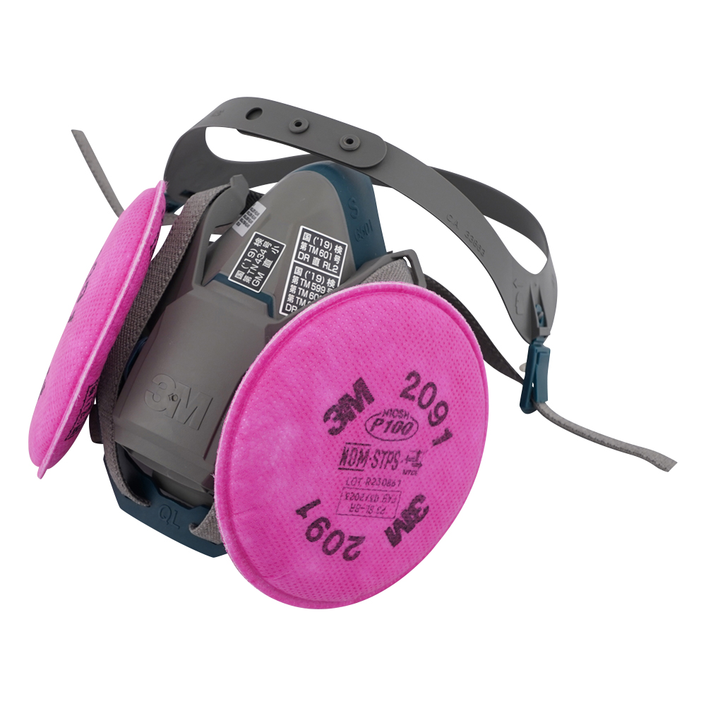 ●別売の吸収缶・ろ過材セット(6001/2091-L3)、吸収缶(6001)を装着することにより、有機溶剤業務にも使用可能な防毒マスクとして使用できます。