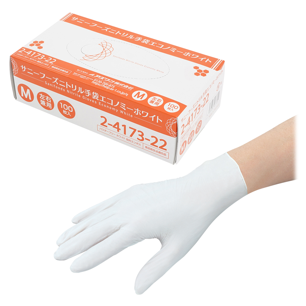 サニーフーズニトリル手袋エコノミー 白 M 100枚×10箱入