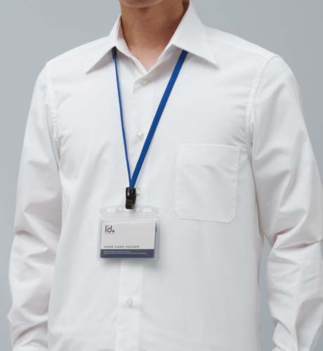 二つ折りタイプの名札ケース。2枚のICカードを2箇所に収容し、名札ケースを開いて別々に読取らせることで、エラーを防ぎます。透明プロテクター入り。脱落を防止するがっちりロックのフックパーツ採用。