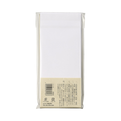 祝詞、弔辞、送辞、答辞など慶弔両用で使用できる式辞用紙(小)です。にじみを抑え、書きやすくインキ止めしている高級奉書紙使用。罫入り。