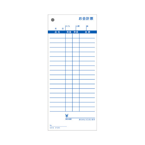 見やすく書きやすい、コクヨのお会計票。