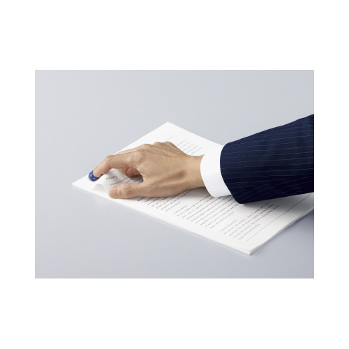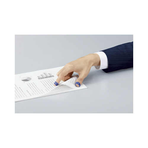 めくりやすさ抜群!働く場に最適なベーシックカラーの紙めくり。落ち着いた色(ネイビー)がオフィスやスーツにぴったり!クリアカラーは指の色にとけこみ、着けたままでも目だたないから、都度はずさなくてOK!