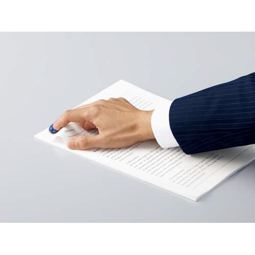めくりやすさ抜群!働く場に最適なベーシックカラーの紙めくり。落ち着いた色(ネイビー)がオフィスやスーツにぴったり!クリアカラーは指の色にとけこみ、着けたままでも目だたないから、都度はずさなくてOK!