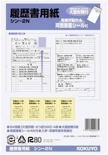 履歴書用紙(大型封筒付き)B5 4枚接着シール付