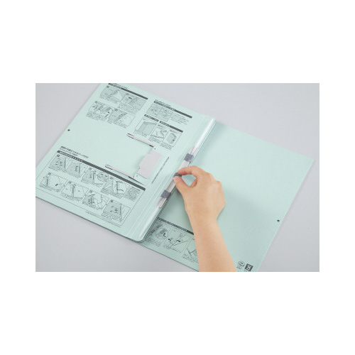 中抜きパーツで書類の中抜きの煩わしさを解消!横から出し入れできる新設計とじ具で抜き差し簡単。背部分上部の補強テープで背表紙が傷みにくい。最大約1000枚まで収容。書類に合わせた背幅で省スペース収納。