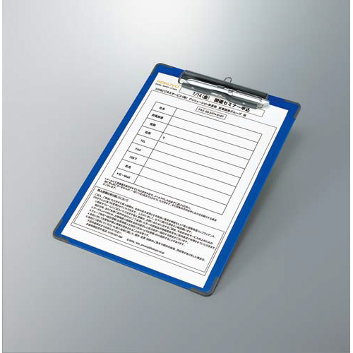 クリップ部分に書類のすべり止めと、ペンホルダーが付いた用箋挟のカラータイプ。丈夫なクロス貼りのボードに、さびにくいPP鋼板のクリップつきです。