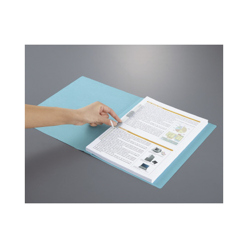 クリヤーポケットを綴じてもはみ出さないセミワイド表紙。通常のフラットファイルよりもワイドな表紙サイズです。250枚収容可能なので書類を1冊にまとめて整理するのに最適です。