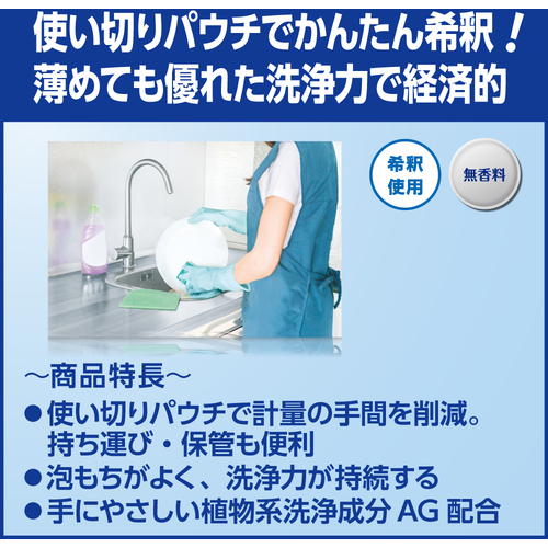 ●植物性洗浄成分AG配合です。泡切れがよく、手に優しい使いきりで簡単に希釈できます。