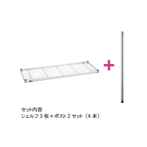 エレクターのワイヤーシェルフとポールを人気の組合せのセットに。省スペースでの書類の収納や商品の陳列に便利なサイズです。