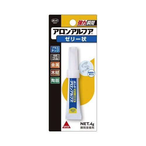 液ダレの心配がないゼリー状で、隙間や凸凹面に最適です。液がしみこみやすい木材や陶器の接着にも適しています。