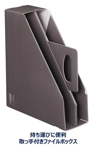 上下可動式の取っ手付きなので、持ち運びやすく、ワゴンからの出し入れもしやすいファイルボックス。書類を分けやすい仕切りつき。片面が大きくカットされているので、中身を検索しやすく、取り出しやすい仕様です。