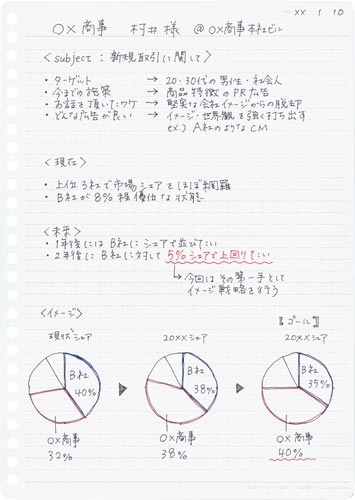 文章がきれいにまとまるドット入り罫線タイプ。罫線上に等間隔に並んだドットを活用すると、美しく書くことができ、見返しやすくなります。にじみにくく、インクが裏に透けにくいコクヨオリジナル原紙を使用。