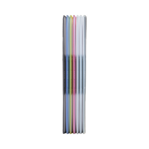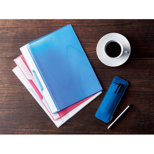 スリムな形状で大きな見出し(替背紙式)、360度折り返せる表紙で2穴とじ具のファイルにとじられるタイプです。クリヤーブック<FITUS>(フィタス)と組み合わせるとさらに便利です。