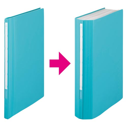 書類量に応じて背幅が変わるから、収容量が少ないときはスリムに、収容量が増えてもかさばらずにキレイに収容可能です。破れにくい厚口ポケットだから、耐久性が高く長期保管にも最適です。