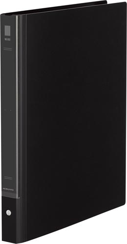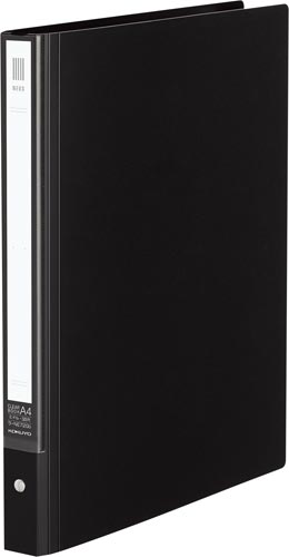 「背幅が変わる」機能と「ガイド機能付き専用ポケット」により従来品に比べて約1.5倍のポケットを収容することができます。レバーを立ててとじ具をロックすれば衝撃でリングが開いてしまうことがありません。