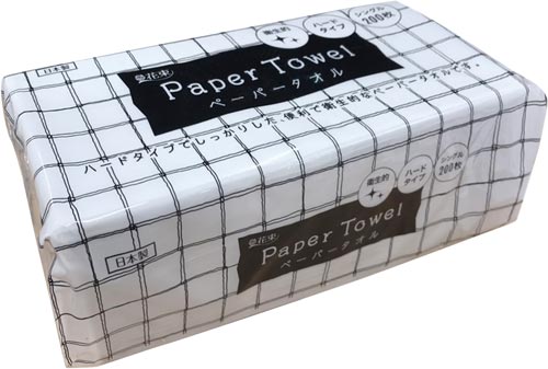 破れにくいハードタイプの再生紙ペーパータオル。使いやすい中判サイズ。インテリアにも馴染むデザイン。日本製。