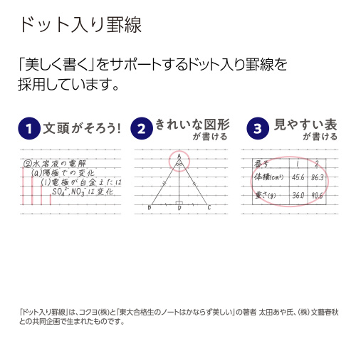 うすくて軽く、書き心地なめらかなスマートキャンパス。美しく書けるドット入り罫線タイプ。