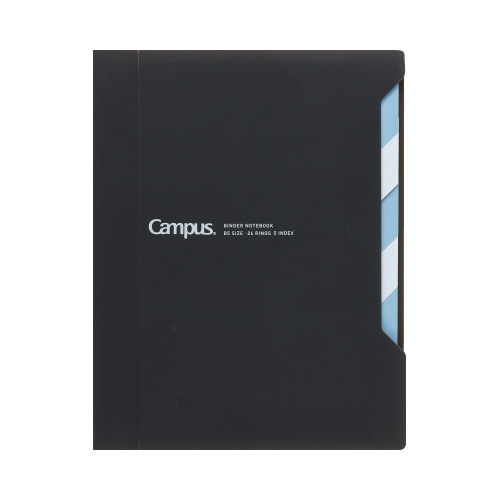 複数教科をまとめる際分類しやすい5枚のインデックス付き。表紙色はモノトーンの配色で落ち着いたデザイン。スライド式とじ具で開け閉めしやすい。表紙が折り目つきで持ちやすく大きく開いて閲覧しやすい。