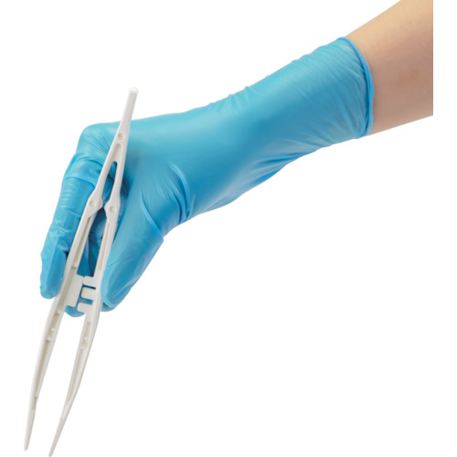 ●プラスチック(ビニール)手袋にニトリル成分を配合することで、指先にしっかりフィットし、ニトリル手袋と同等の細かい操作が行えます。