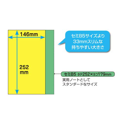 持ち歩きにも便利なスリムサイズ。セミB5サイズよりも33mmスリムな持ちやすい大きさです。