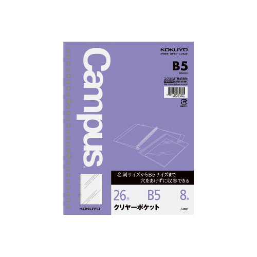 ルーズリーフ用クリヤーポケットB5 26穴丸穴8枚