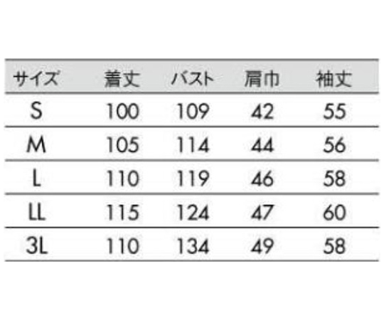 LL、着丈:115、バスト:124、肩巾:47、袖丈:60