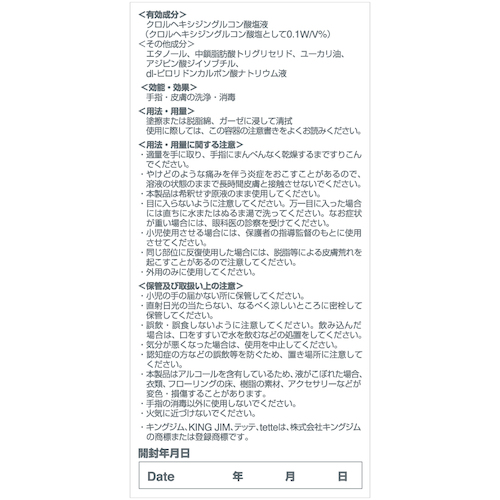●効能・効果 : 手指・皮膚の洗浄・消毒