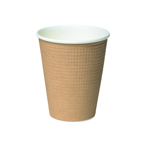 表面にエンボス(凹凸)加工紙を巻いた二層式紙コップ。