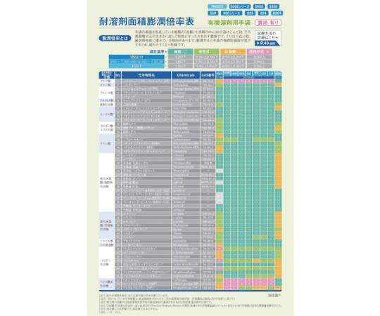 ●トルエン、キシレン、ベンゼン、アセトニトリル、酢酸エチルなどの薬品を使用した軽作業用としてお使いいただけます。