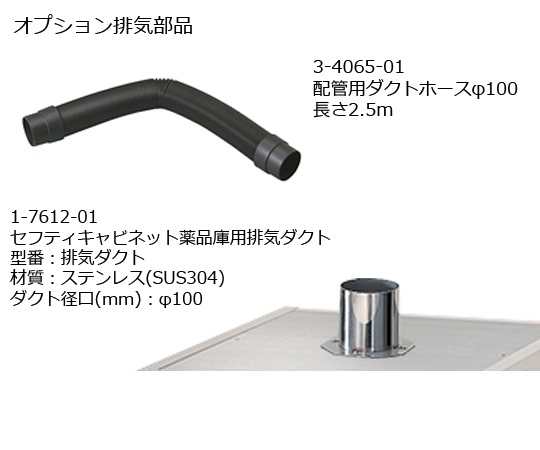 ●天井部には100mmφ排気ダクト(別売)を取り付ける事ができます。排気を効率よく行うには別売のベースをご使用ください。