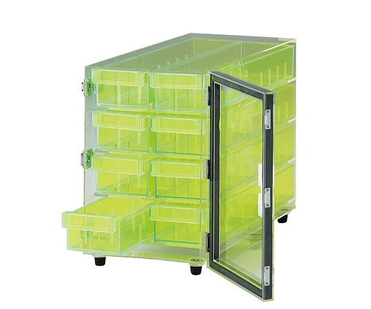 ●材質:本体・扉部/PMMA(アクリル)、扉パッキン/ラテックススポンジ+ネオプレンゴム皮膜、引出し/PS(ポリスチレン)