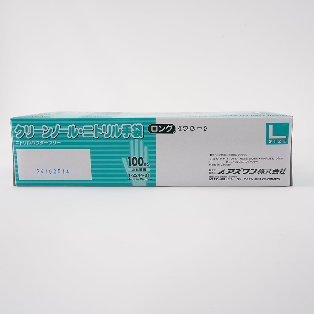 ●*本製品は【1-2244-01(クリーンノールニトリル手袋ロング(パウダーフリー)ブルーL100枚入)×10個】のケース販売用の品番となります。