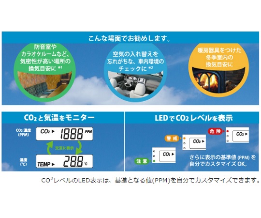 ●測定範囲:CO2/0~3000ppm、温度/0~+50℃