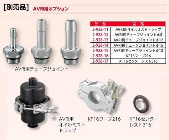 ●ご使用の真空ラインにあわせてオプションで幅広いサイズのチューブジョイントを選択いただけます。