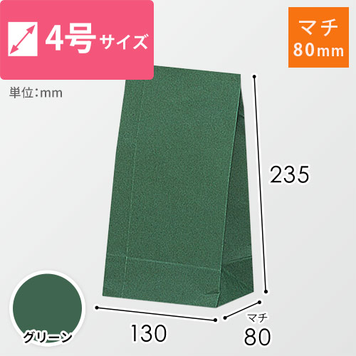 マチが付いて容量たっぷりな角底袋。クラフト紙に印刷を施すことで、深みのあるグリーンに仕上がりました。