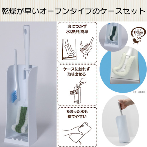 ●トイレのフチ裏が洗いやすい形状です。●水ハネの少ない不織布タイプです。●強力に汚れを落とす研磨剤付き不織布を使用しています。●保管に便利なケース付きです。