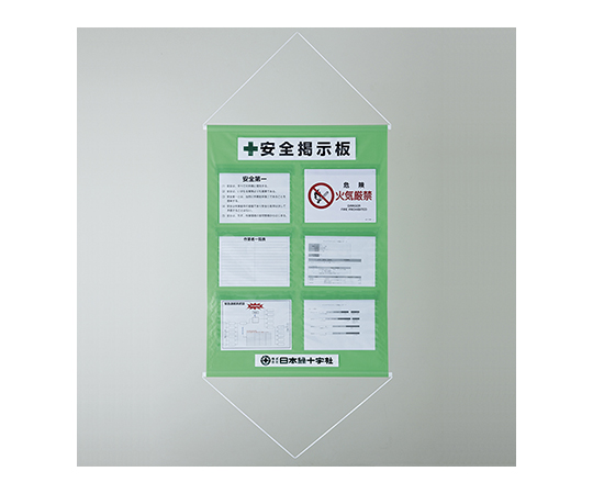 ●セット内容:タイトル表示板(表示内容:安全掲示板)×1、社名用厚紙×1、上下パイプ(ヒモ付)