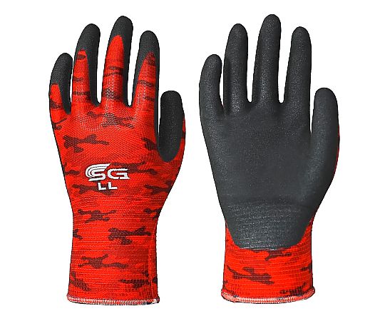 ニトリルゴム背抜き手袋 迷彩レッド LL