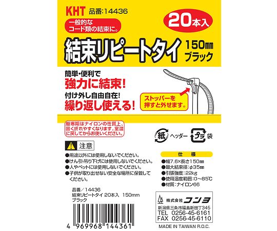 結束リピートタイ 20本入 黒 150mm