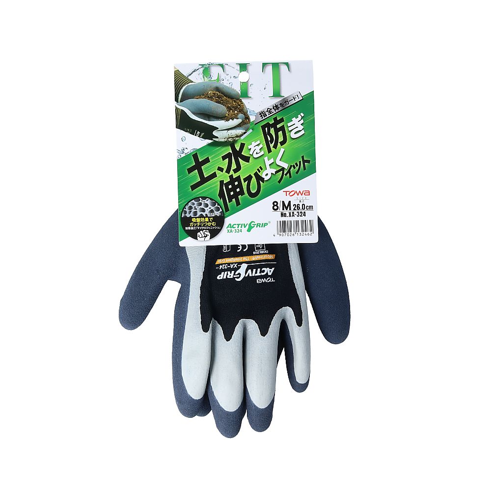 ●天然ゴムをコーティングしているため、引き裂きに強く、しなやかで作業性の良い手袋です。