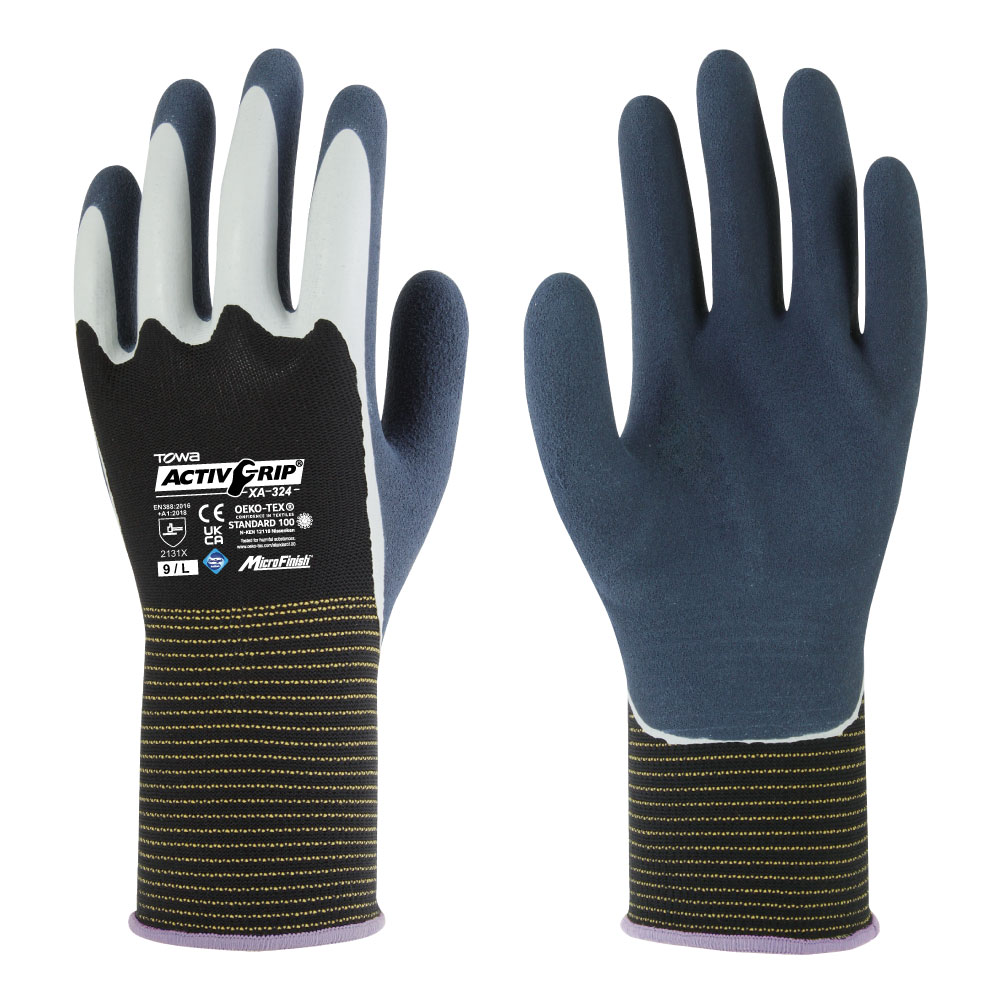 ●天然ゴムをコーティングしているため、引き裂きに強く、しなやかで作業性の良い手袋です。