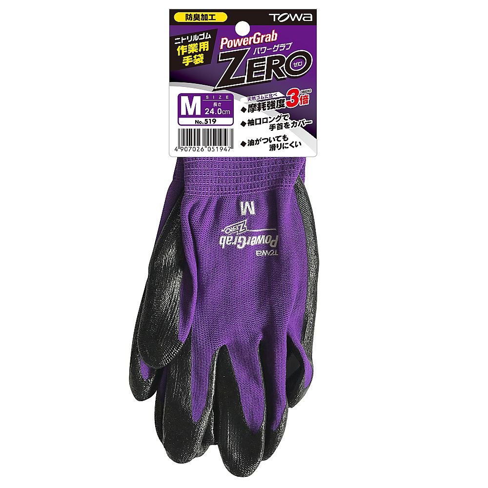 ●ニトリルゴムをコーティングしているため、油や突き刺し、引っ掻きに強く、耐摩耗性に優れています。