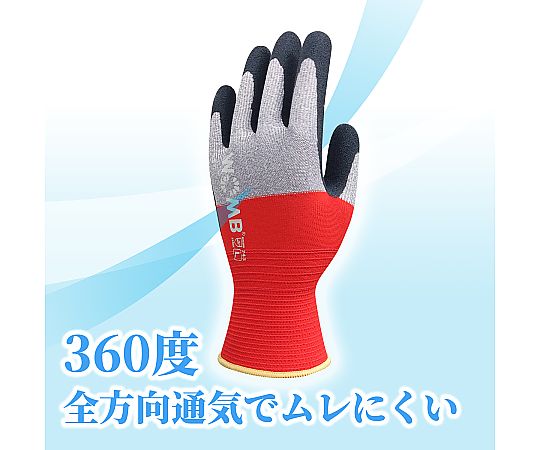 ●手のひら、手の甲の両方から通気し、360度全方向通気を実現します。