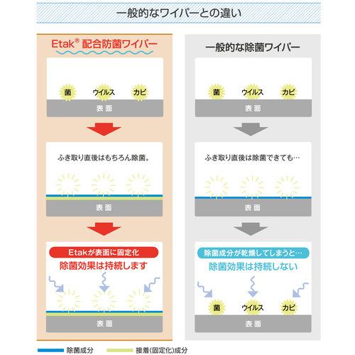 ●特許成分Etakを使用し、表面に固定化することにより、除菌効果・防ウイルス効果が持続します。