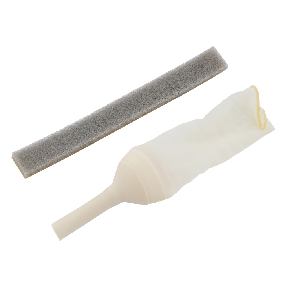 ●使用方法:薄いラテックスでできたコンドームタイプの採尿部にペニスを入れ、根元を付属の固定バンドで止めてください。採尿袋等連結パイプをコネクター部に差し込んで完全に接続します。