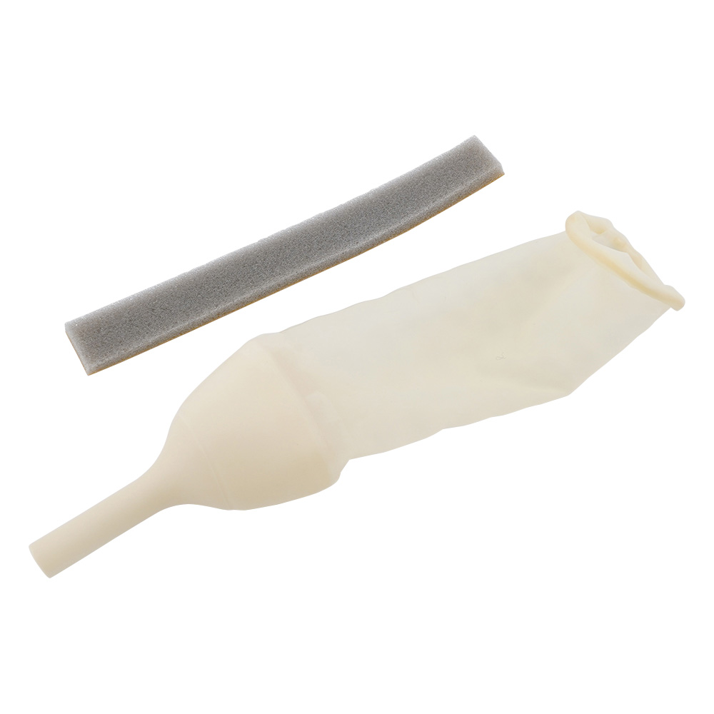 ●使用方法:薄いラテックスでできたコンドームタイプの採尿部にペニスを入れ、根元を付属の固定バンドで止めてください。採尿袋等連結パイプをコネクター部に差し込んで完全に接続します。