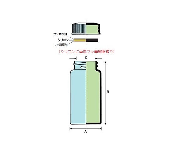 ●材質:本体/硼珪酸ガラス(日本電気硝子製)、キャップ/PP(ポリプロピレン)、パッキン/4FSiパッキン(シリコンに両面フッ素樹脂張り)
